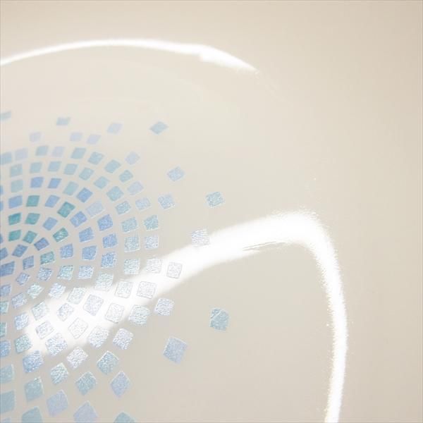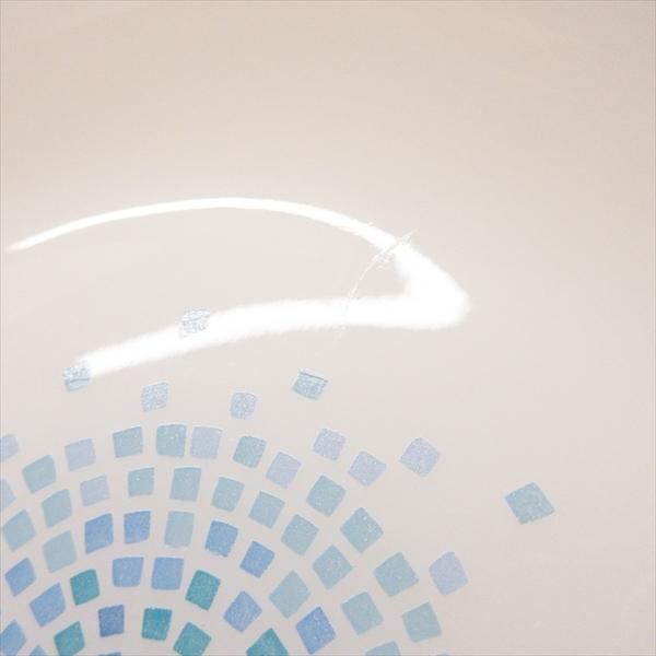 ブルーモザイクの細かなプリントにはもともと若干のよれやロスが見られますが、こちらも接近しなければ気がつかない程度で、全く気にならないでしょう。