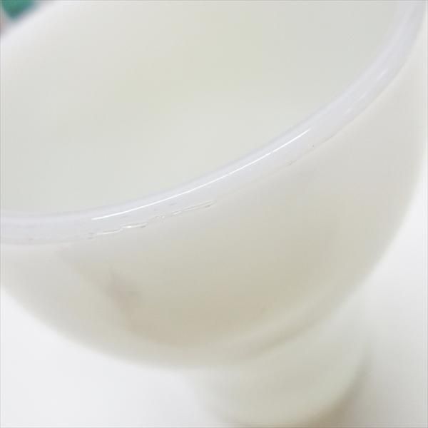 全体的にしっかりと光沢があり、かけ、われ、チップはありませんが、光の加減で反射するマイナーなかきまぜ痕がマグ内側底に微量確認でき、リム周りにややこすれ痕も見られます。