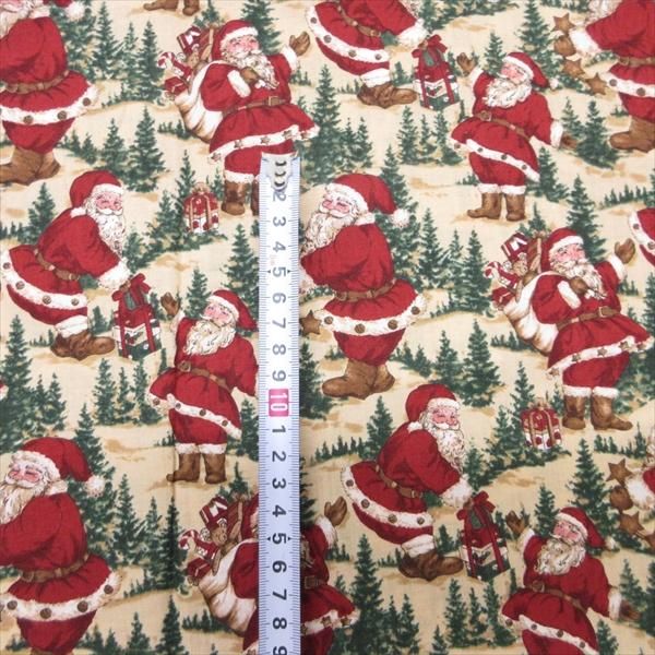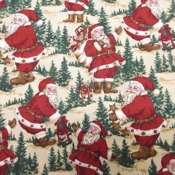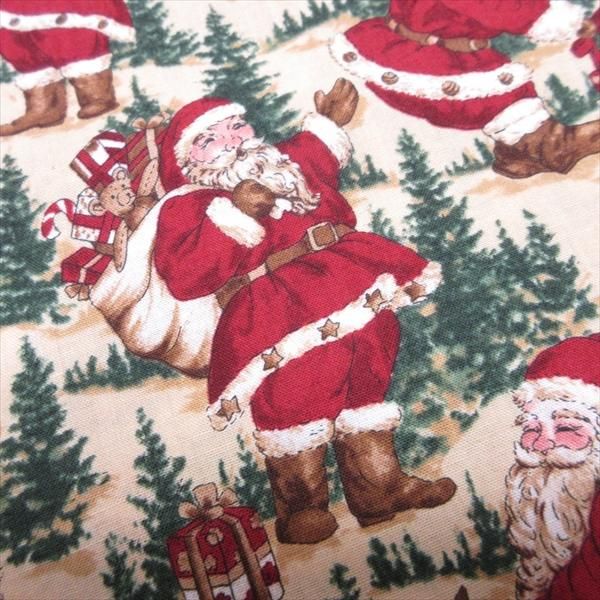 ファブリック&はぎれ 104cm x 104cm ベージュベース・たくさんのサンタ