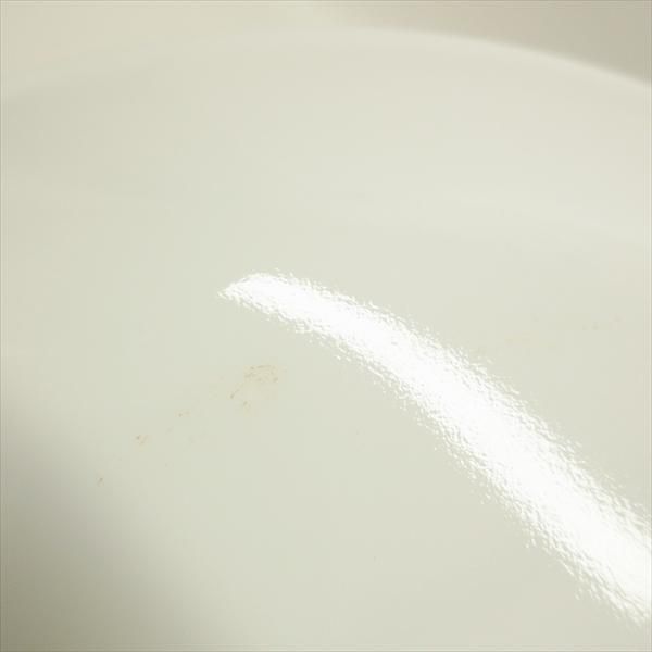 未使用品ですので使用感はありませんが、製造工程上の素地の皺、微量の着色(主に底外側)、プリントのずれ、ロス、よれ、また保管時のすれやスクラッチなどが発見できるかもしれません。いずれにしろさほどわからない程度で、実際の使用時に支障のある劣化はありません。