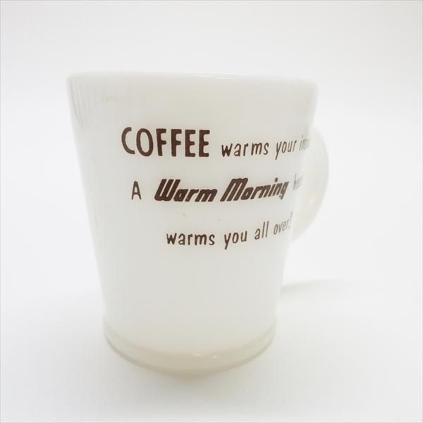 ミネソタ州にあった家電店のアドバタイジングマグカップ。大体1950年頃のもので、「Warm Morning」という暖房器具の広告がプリントされています(「コーヒーで内側から温まり、Warm Morningでいたることころ暖めよう」と書かれています)。