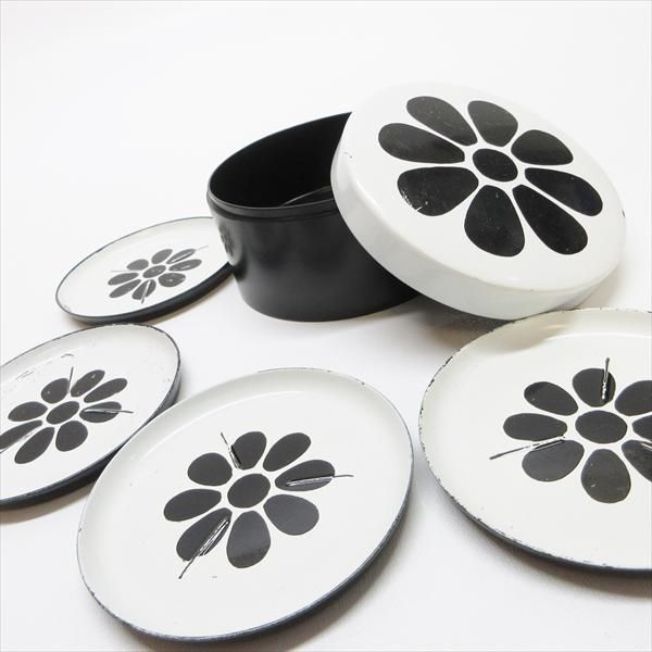 ケース付き ブラックフラワー レトロコースター 4枚セット