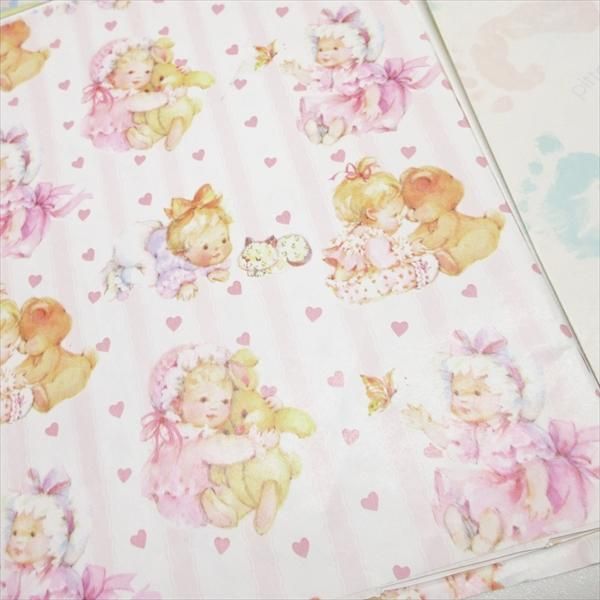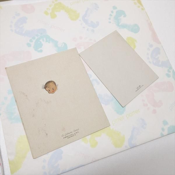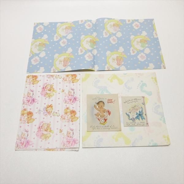 ベイビーたちをモチーフにしたカード2枚とラッピングペーパー3種類のセット。